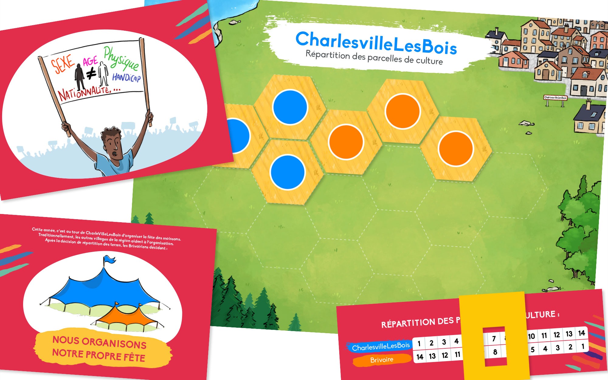 BL-Graphics accompagne déjà le projet « Migration, au-delà des préjugés » – ou MADP – depuis 2018 en graphisme ! En 2022, l’équipe décide qu’il est temps de donner une nouvelle identité au projet : plus humaine, plus chaleureuse et plus dynamique ! Nous relevons donc le défi en proposant une illustration d’un groupe composé de pleins de personnages diversifié et colorés. MADP demande en même temps à BL-Graphics de les accompagner sur le design de leurs premiers supports « professionnels » pour une de leurs activités. C’est tout naturellement qu’on se tourne donc vers l’illustration. Avec deux nouveaux jeux en 2024, nous sommes arrivés à 6 jeux illustrés et mis en page par notre société !