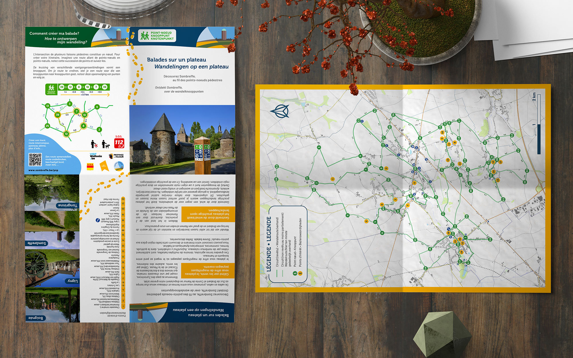 L’ASBL des Sentiers Sombreffois contacte BL-Graphics en 2023 pour réaliser une carte de balade dans sa commune ainsi que des panneaux contenant photos, indications et explications. Nous produisons ensuite une carte dépliante de ces itinéraires.